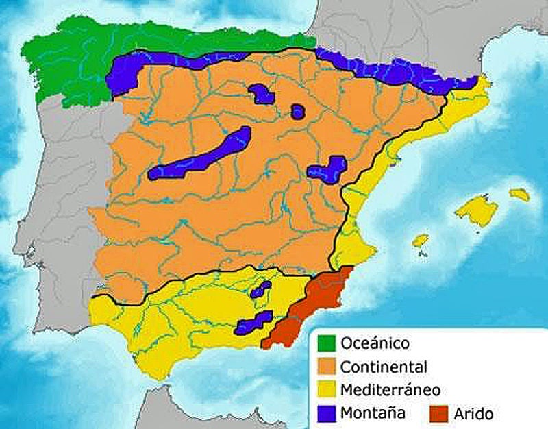 Het weer en klimaat van Spanje - Hoewel de meesten denken bij Spanje aan zon en warm zomers weer, is dat echter niet zo. De zomermaanden zijn in het algemeen droog en warm tot zeer warm.